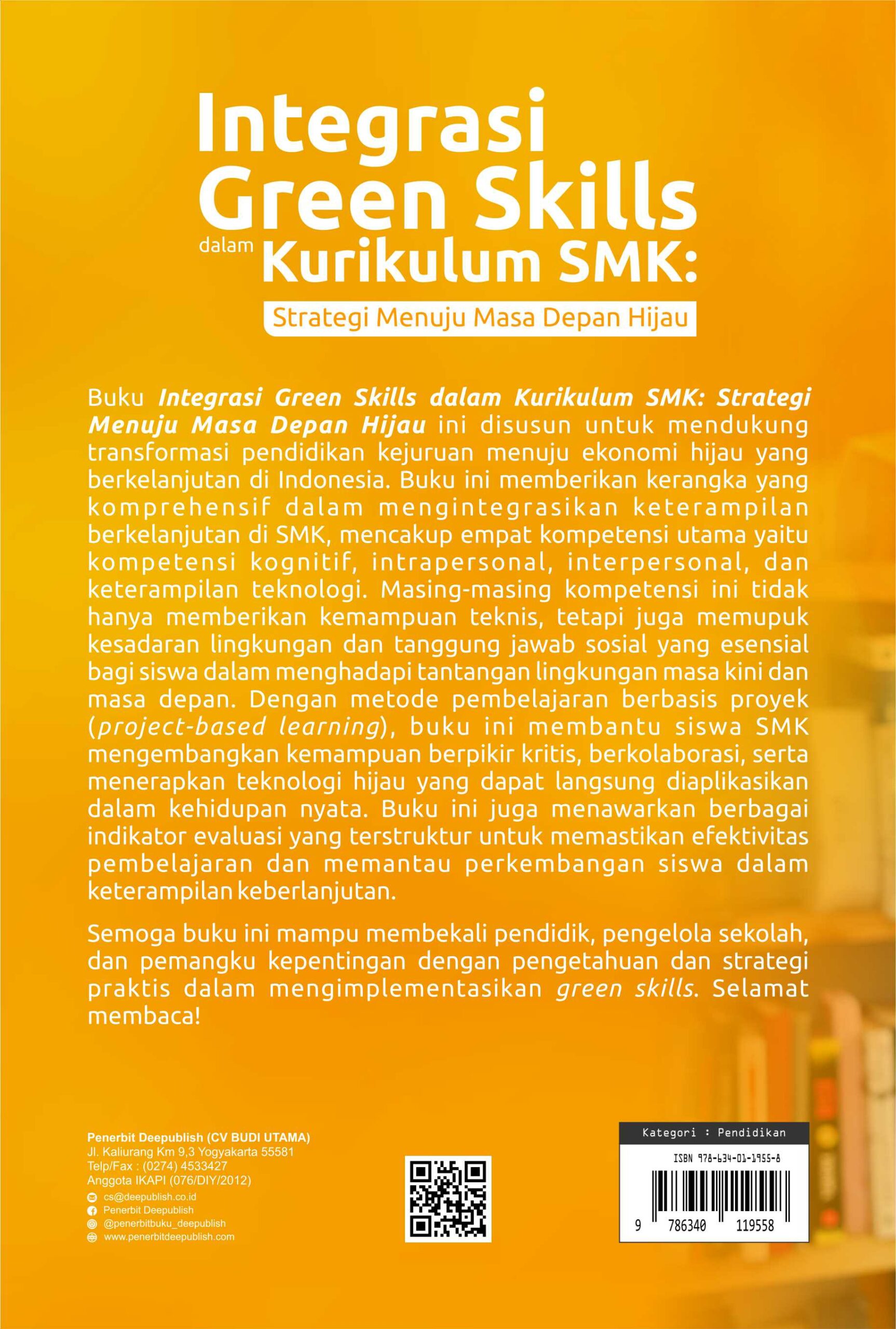Buku Integrasi Green Skills Dalam Kurikulum SMK: Strategi Menuju Masa Depan Hijau diterbitkan oleh Penerbit Buku Pendidikan Deepublish.