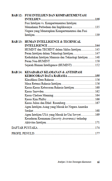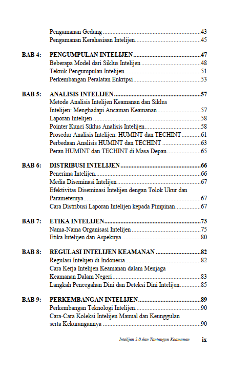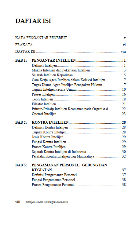 Berikut Daftar Isi Buku Administrasi Negara yang berjudul Buku Intelijen 5.0 dan Tantangan Keamanan, diantaranya: