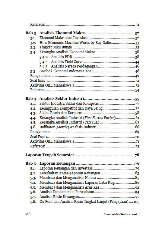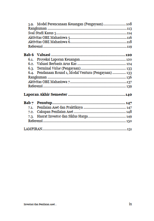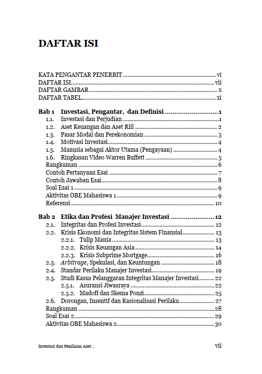 Berikut Daftar Isi Buku Akuntansi yang berjudul Buku Investasi dan Penilaian Aset Buku Ajar Dasar Investasi Berbasis Obe (Outcomes Based Education), diantaranya: