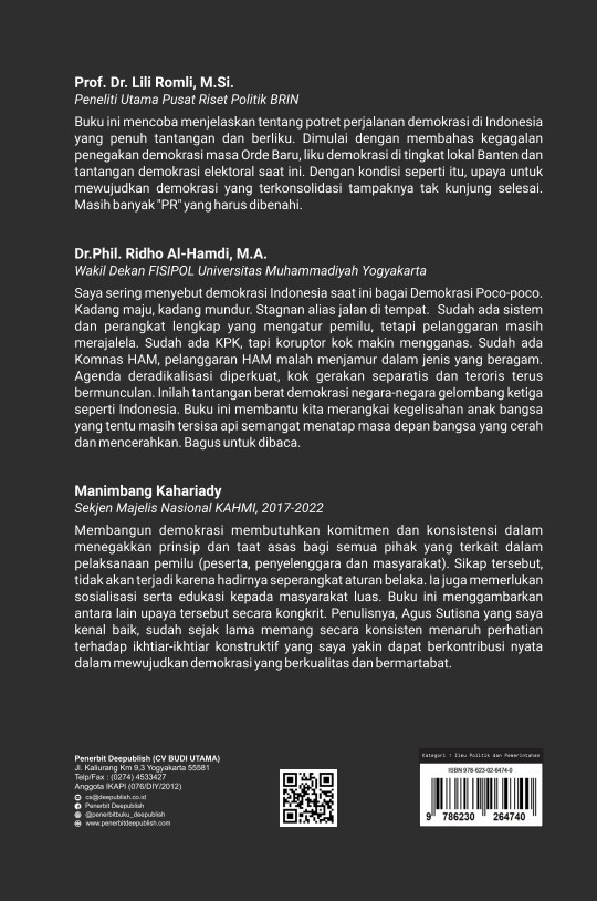 Buku Jalan Berliku Transisi Demokrasi ini diterbitkan oleh Penerbit Buku Pendidikan Deepublish.