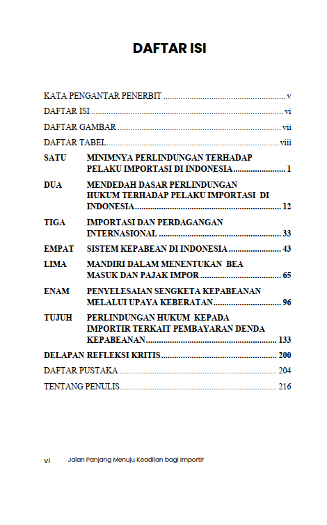 Berikut Daftar Isi Buku Hukum yang berjudul Buku Jalan Panjang Menuju Keadilan Bagi Importir, diantaranya: