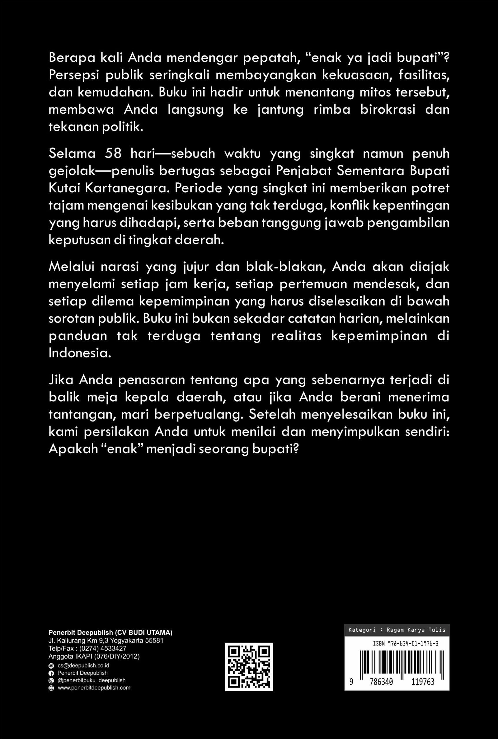 Berapa kali Anda mendengar pepatah, “enak ya jadi bupati”? Persepsi publik seringkali membayangkan kekuasaan, fasilitas, dan kemudahan. Buku ini hadir untuk menantang mitos tersebut, membawa Anda langsung ke jantung rimba birokrasi dan tekanan politik.