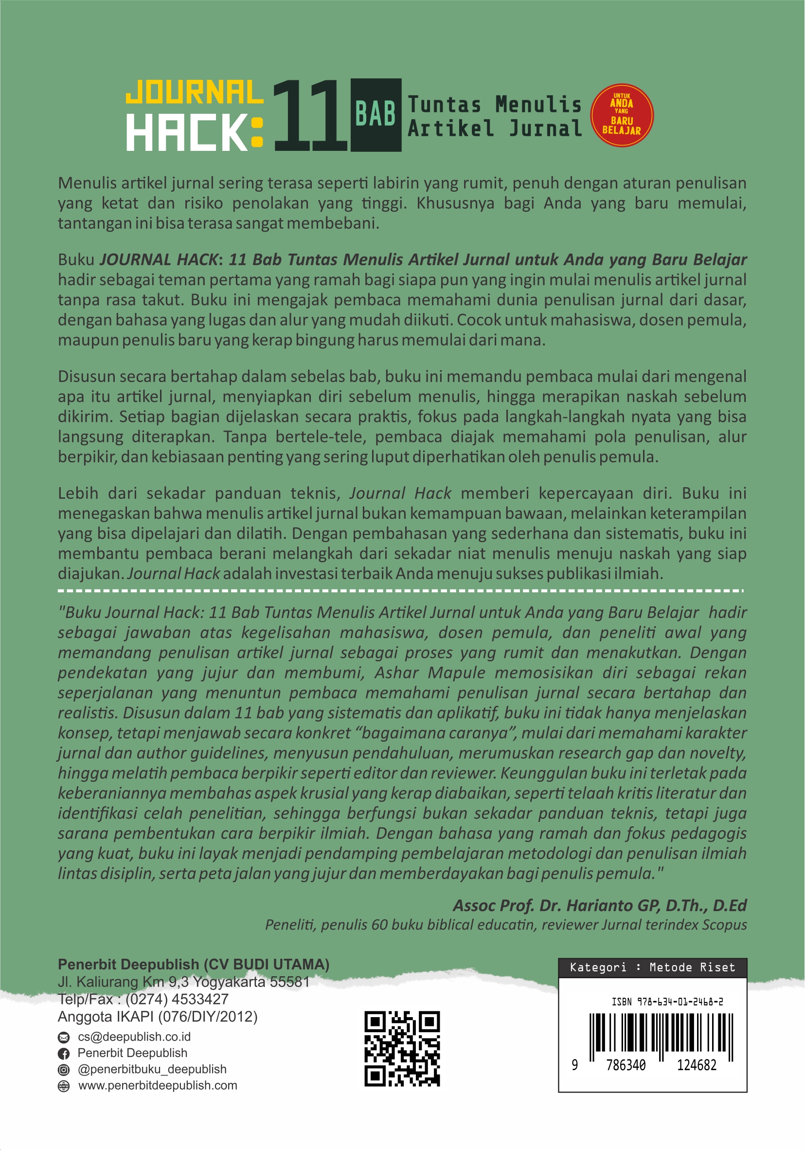 Buku Journal Hack: 11 Bab Tuntas Menulis Artikel Jurnal untuk Anda yang Baru Belajar diterbitkan oleh Penerbit Buku Pendidikan Deepublish.