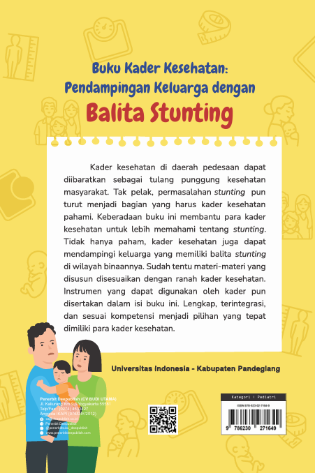 Buku Kader Kesehatan: Pendampingan Keluarga dengan Balita Stunting ini diterbitkan oleh Penerbit Buku Pendidikan Deepublish.