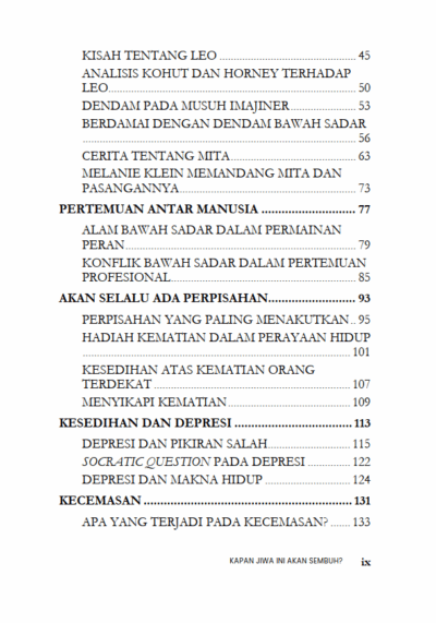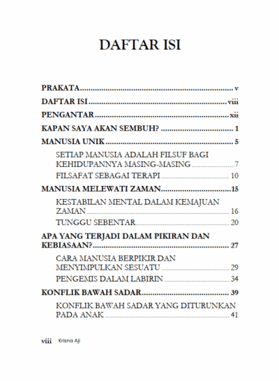 Berikut Daftar Isi Buku Psikologi yang berjudul Buku Kapan Jiwa Ini Akan Sembuh? Filsafat Sederhana Tentang Kesembuhan Jiwa, diantaranya: