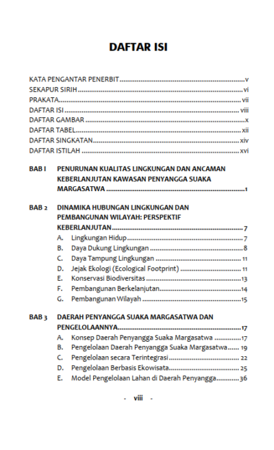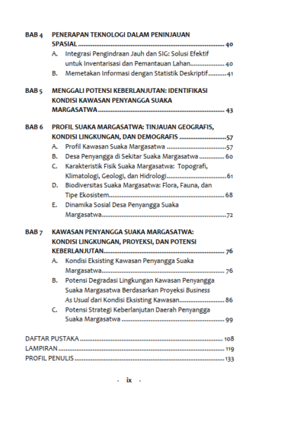Berikut Daftar Isi Buku Teknik yang berjudul Buku Kawasan Penyangga Suaka Margasatwa: Kondisi, Proyeksi, dan Keberlanjutan, diantaranya: