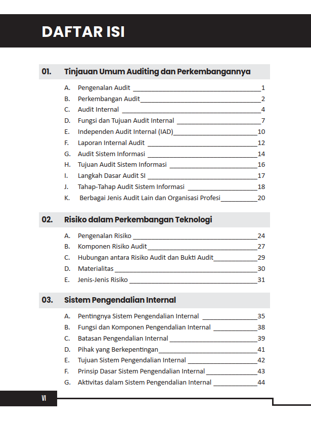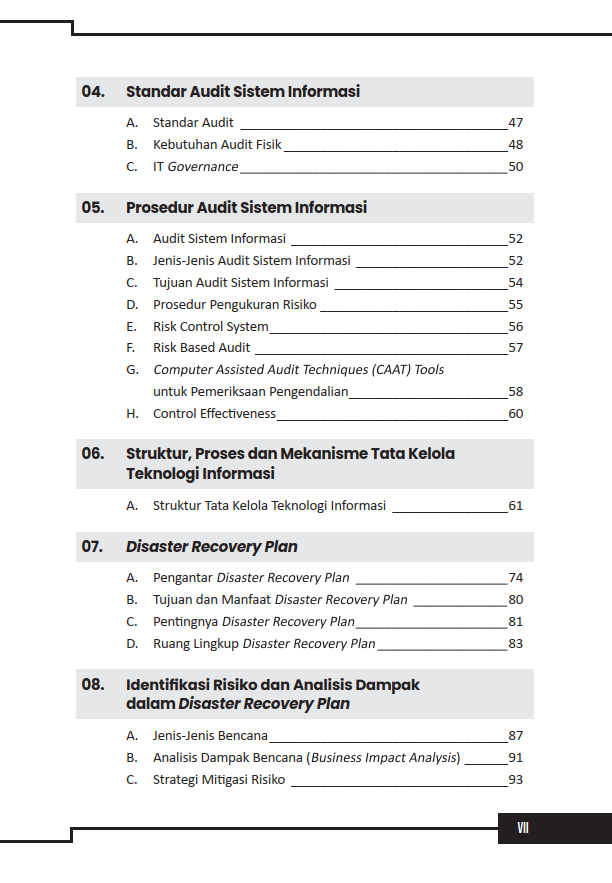 Berikut Daftar Isi Buku Ilmu Komputer yang berjudul Buku Keamanan Teknologi Informasi: Strategi Pemulihan, Audit, dan Manajemen Risiko, diantaranya: