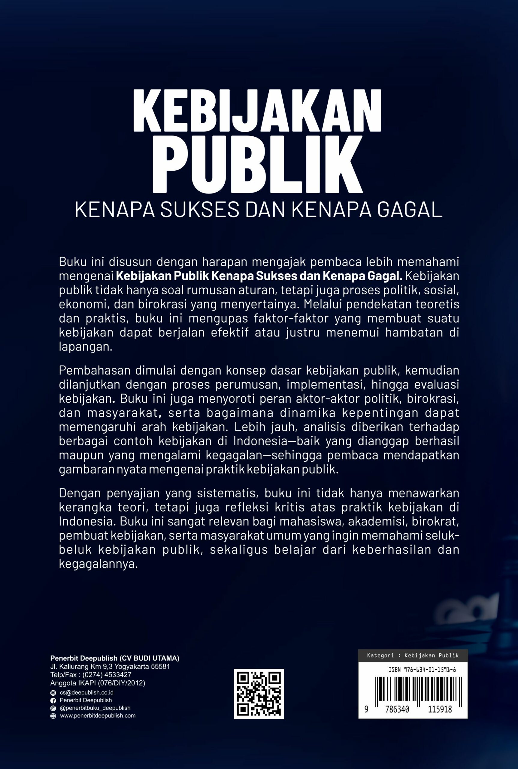 Buku Kebijakan Publik: Kenapa Sukses dan Kenapa Gagal diterbitkan oleh Penerbit Buku Pendidikan Deepublish.