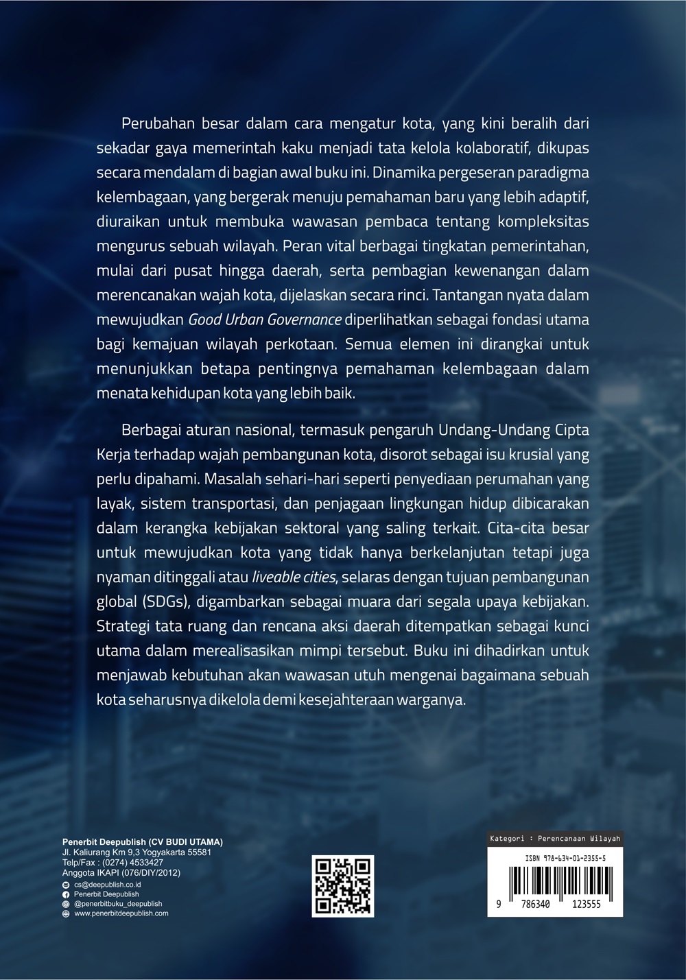 Buku Kelembagaan dan Kebijakan Tata Kelola Perkotaan diterbitkan oleh Penerbit Buku Pendidikan Deepublish.