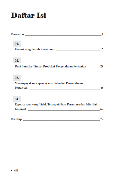 Berikut Daftar Isi Buku Sejarah yang berjudul Buku Kepercayaan yang Tak Pernah Bisa Direngkuh: Produksi dan Sirkulasi Pengetahuan Pertanian Di Hindia Belanda (1817–1942), diantaranya: