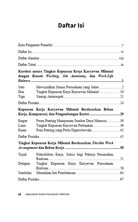 Berikut Daftar Isi Buku Manajemen yang berjudul Buku Kepuasan Kerja Karyawan Milenial, diantaranya: