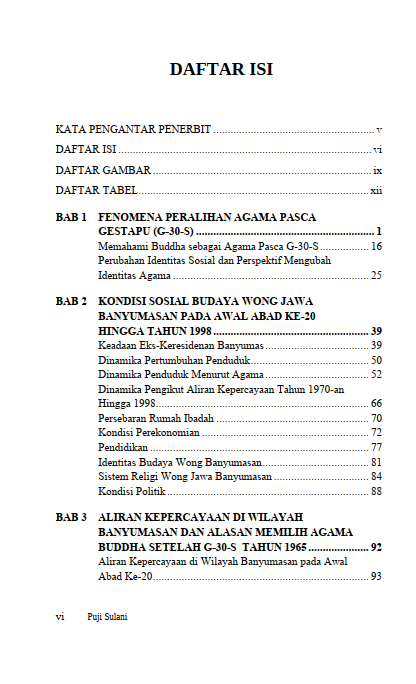 Berikut Daftar Isi Buku Sosial Budaya yang berjudul Buku Ketika Kejawen Bertemu Buddha: Transformasi Sosial Wong Banyumasan Dalam Dinamika Orde Baru, diantaranya: