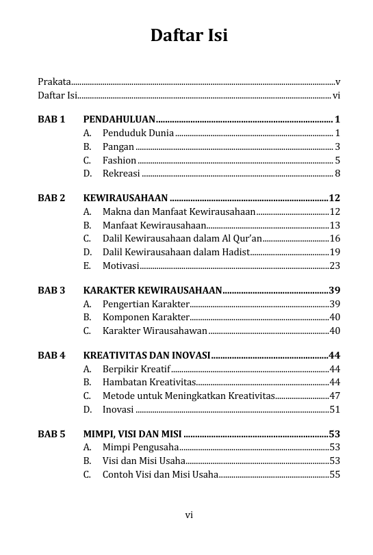 Berikut Daftar Isi Buku Kewirausahaan yang berjudul Kewirausahaan dan Pengembangan Diri (Entrepreneurship & Personal Development), diantaranya:
