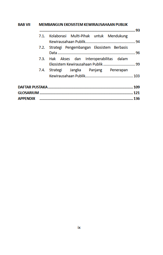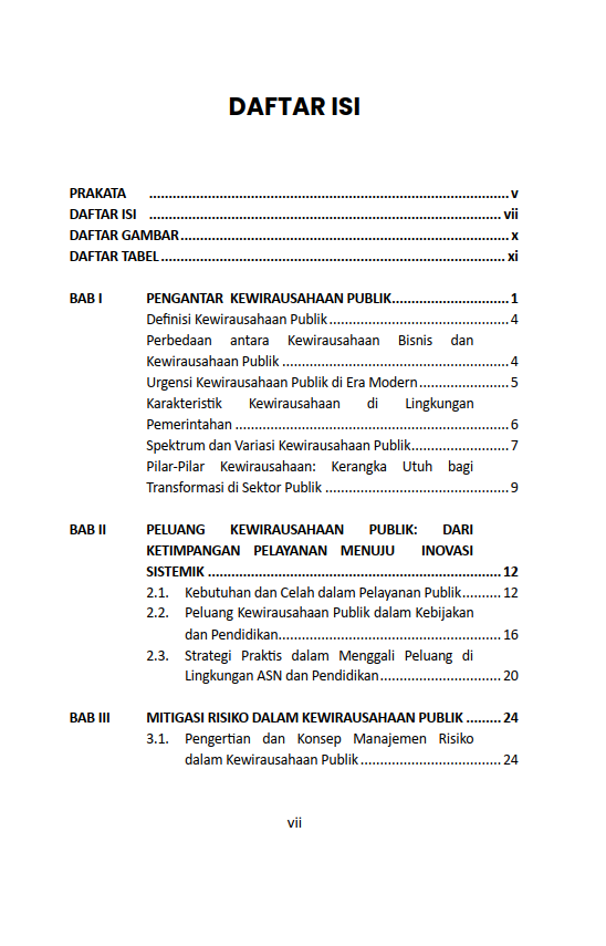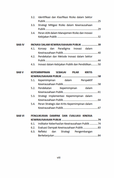 Berikut Daftar Isi Buku Kewirausahaan yang berjudul Buku Kewirausahaan Publik Transformasi Layanan Publik dan Pendidikan, diantaranya: