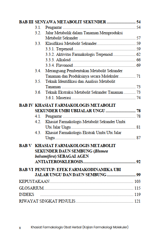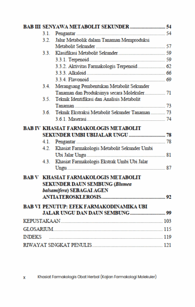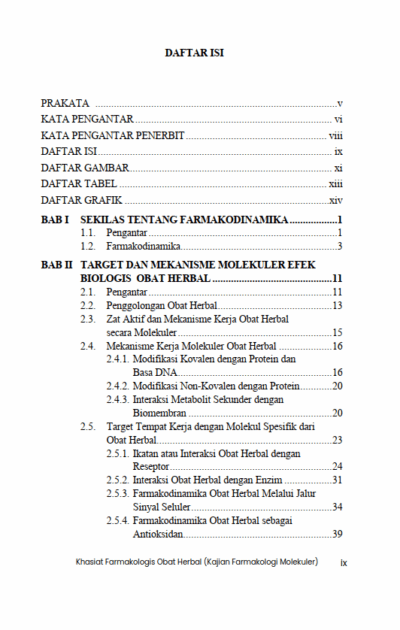 Berikut Daftar Isi Buku Farmasi yang berjudul Buku Khasiat Farmakologis Obat Herbal (Kajian Farmakologi Molekuler), diantaranya: