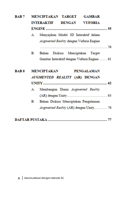 Berikut Daftar Isi Buku Geografi yang berjudul Buku Geovisualisasi dengan Metode 3D, diantaranya: