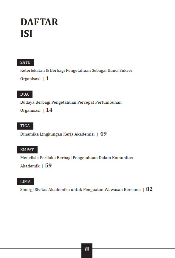 Berikut Daftar Isi Buku Psikologi yang berjudul Buku Knowledge Sharing: Ekosistem Kolaboratif di Lingkungan Akademis, diantaranya: