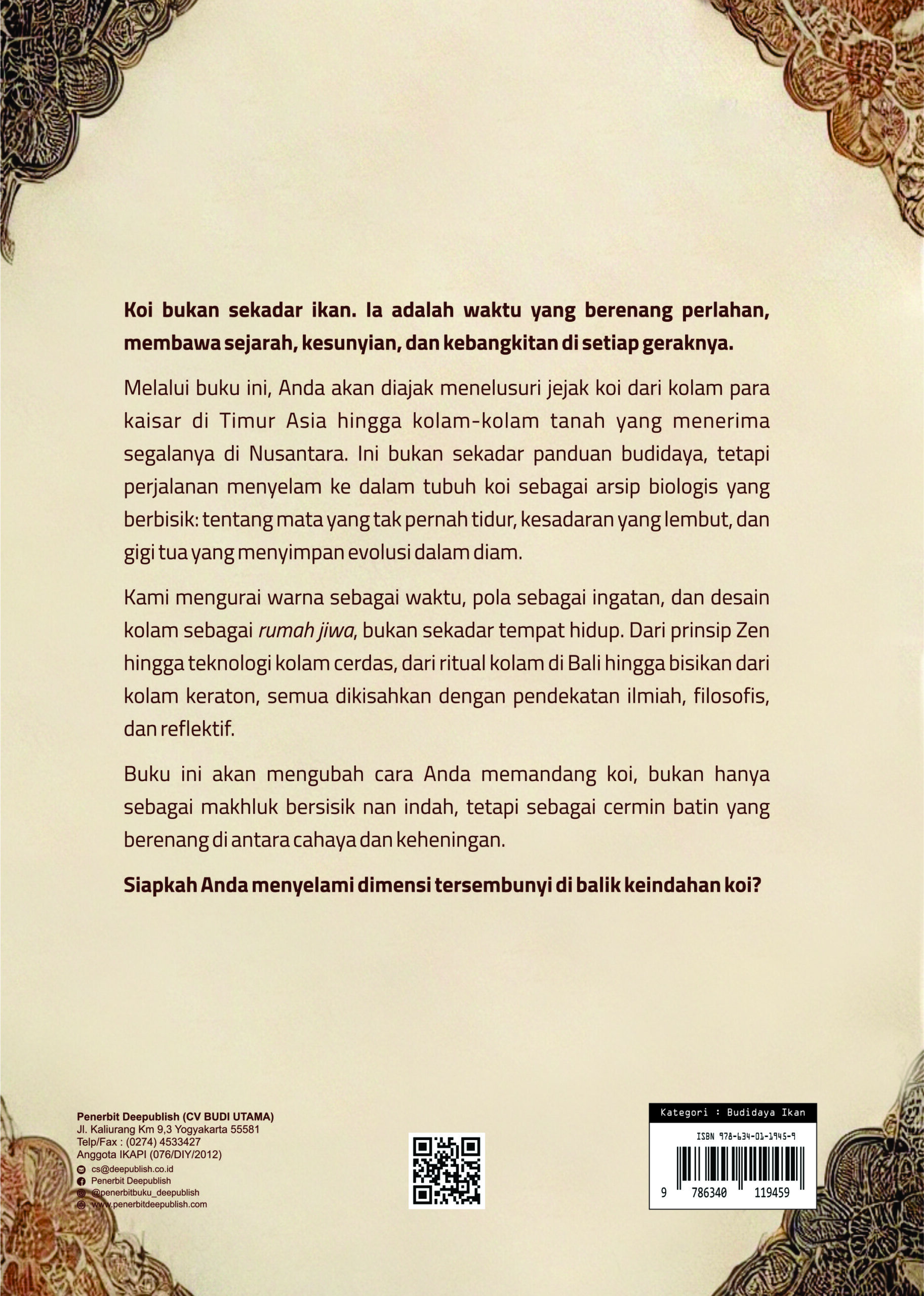 Buku Koi Dari Kolam Kaisar Ke Nusantara Jejak Waktu dan Rahasia Gigi yang Berbisik diterbitkan oleh Penerbit Buku Pendidikan Deepublish.