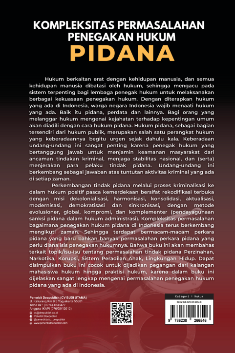 Buku Kompleksitas Permasalahan Penegakan Hukum Pidana ini diterbitkan oleh Penerbit Buku Pendidikan Deepublish.
