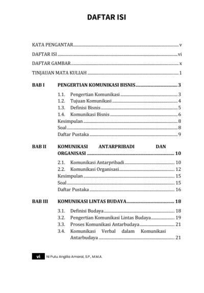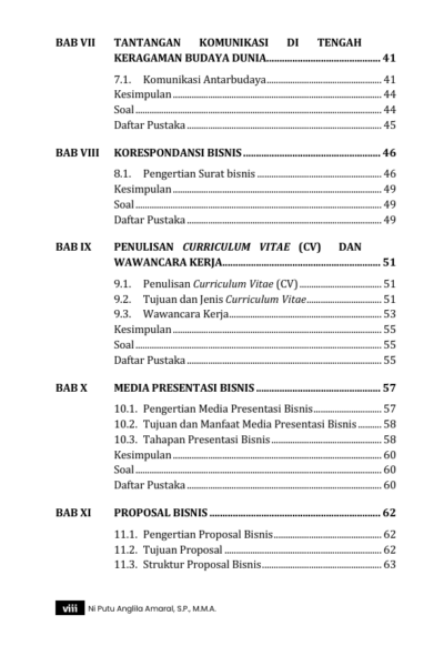 Buku ini dapat menjadi pegangan/referensi bagi mahasiswa, dosen atau masyarakat umum yang ingin memperdalam ilmu tentang peramalan bisnis. Berikut Daftar Isi Buku Komunikasi Bisnis, diantaranya: