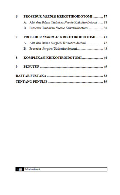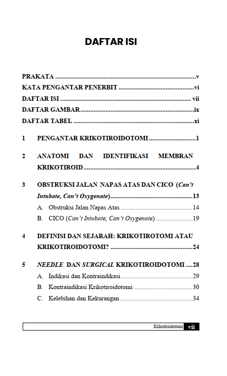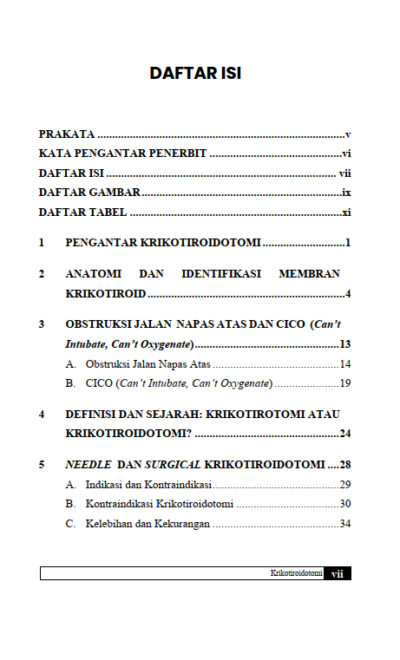Berikut Daftar Isi Buku Kedokteran yang berjudul Buku Krikotiroidotomi, diantaranya: