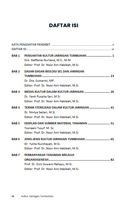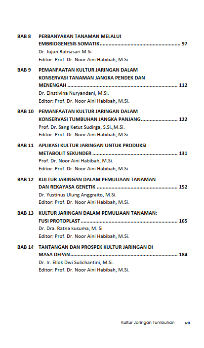 Berikut Daftar Isi Buku Biologi yang berjudul Buku Kultur Jaringan Tumbuhan, diantaranya: