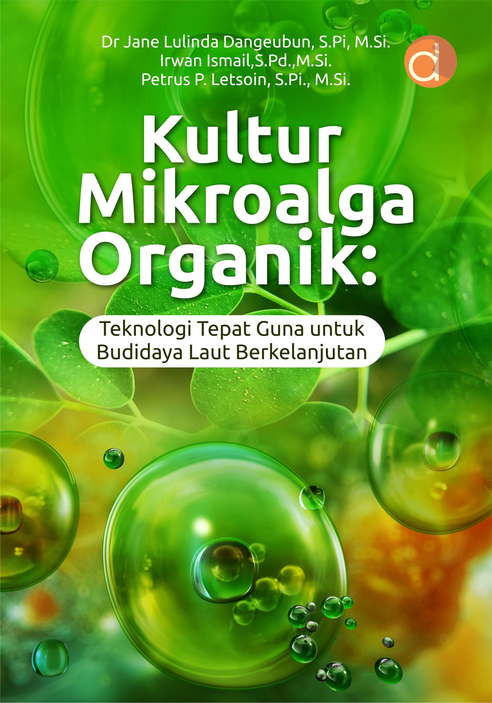 Buku Perikanan yang berjudul Buku Kultur Mikroalga Organik: Teknologi Tepat Guna untuk Budidaya Laut Berkelanjutan merupakan karya Jane Lulinda Dangeubun, Irwan Ismail dan Petrus P. Letsoin. Melalui pendekatan lokal yang ramah lingkungan, buku ini memperkenalkan penggunaan bahan-bahan seperti daun kelor, air cucian beras, dan air kelapa muda sebagai alternatif media kultur yang murah dan berkelanjutan. Isi buku mencakup konsep dasar mikroalga, teknik kultur, manajemen produksi, hingga strategi implementasi. Disertai dengan tugas, studi kasus, dan panduan praktik, buku ini menekankan pentingnya keterlibatan aktif mahasiswa dalam riset terapan dan pemberdayaan masyarakat. Lebih dari sekadar referensi teknis, buku ini menjadi bagian dari gerakan transformatif menuju budidaya laut yang inklusif, adil, dan berkelanjutan melalui kolaborasi multipihak dan inovasi berbasis lokal. Buku Kultur Mikroalga Organik: Teknologi Tepat Guna untuk Budidaya Laut Berkelanjutan sangat cocok menjadi panduan sistematis bagi mahasiswa dan praktisi perikanan dalam memahami berbagai aspek penting mulai dari dasar biologis mikroalga, teknik budidaya, hingga aplikasinya dalam sistem hatchery modern.