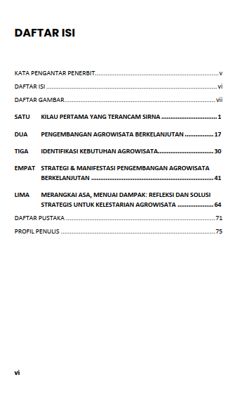 Berikut Daftar Isi Buku Agrowisata yang berjudul Buku Langkah Nyata Membangun Agrowisata Berkelanjutan, diantaranya: