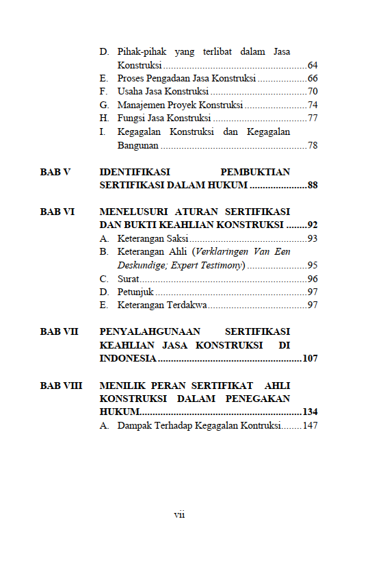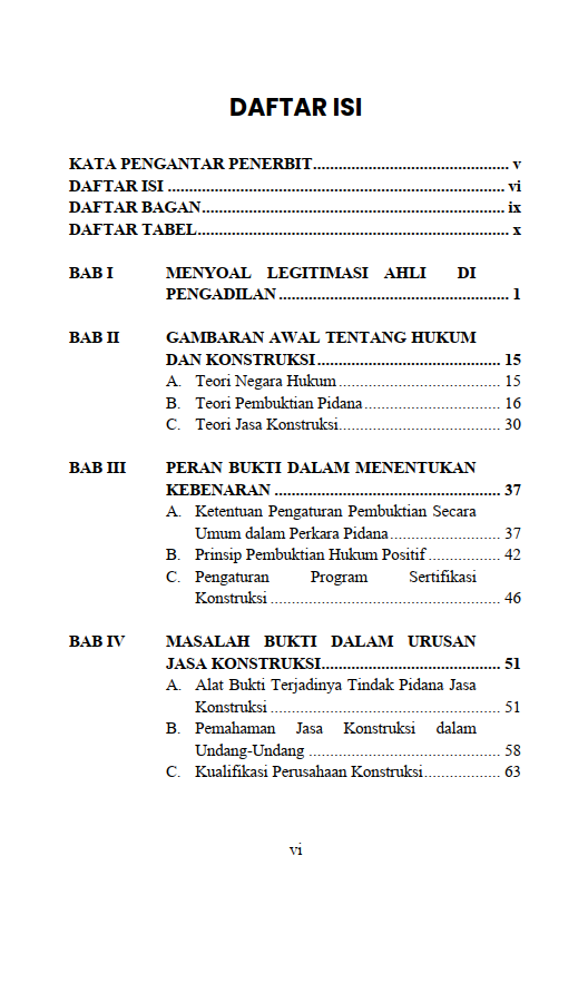 Berikut Daftar Isi Buku Hukum yang berjudul Buku Legalitas dan Legitimasi Sertifikasi Keahlian Jasa Konstruksi dalam Sistem Peradilan Pidana di Indonesia, diantaranya: