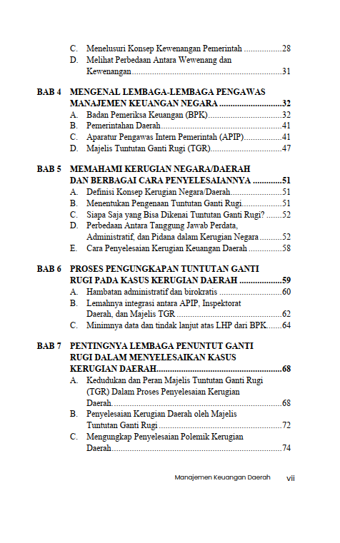 Berikut Daftar Isi Buku Hukum yang berjudul Buku Manajemen Keuangan Daerah: Pentingnya Pengawasan dan Penyelesaian Kasus Kerugian Daerah, diantaranya: