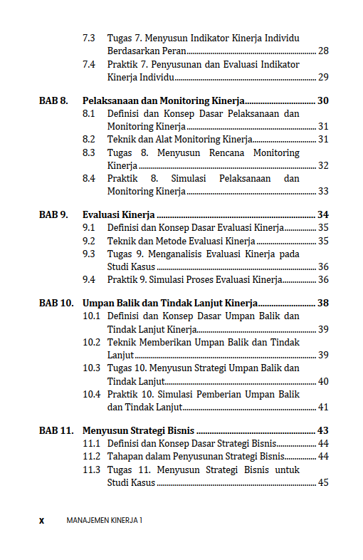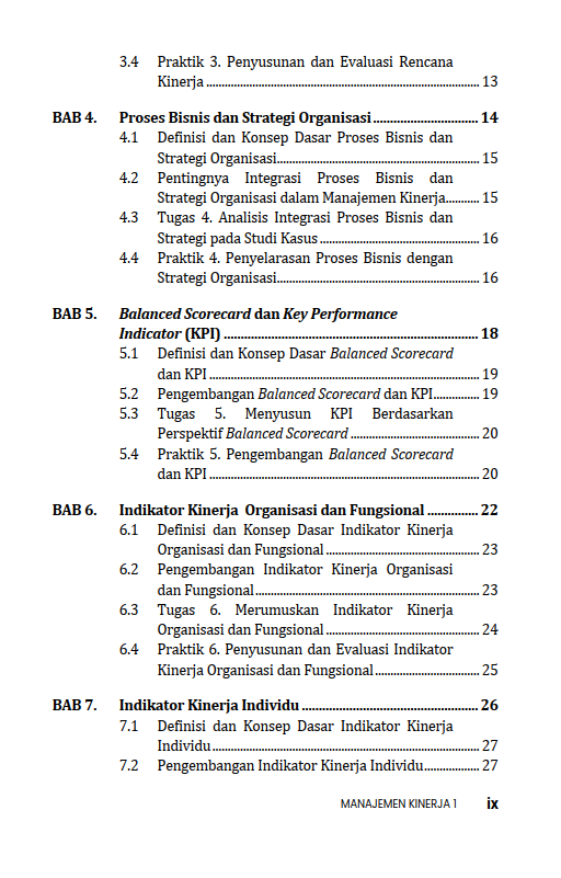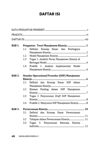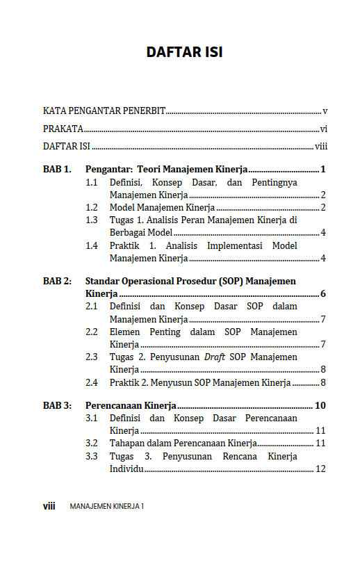 Berikut Daftar Isi Buku Manajemen Kinerja 1, diantaranya: