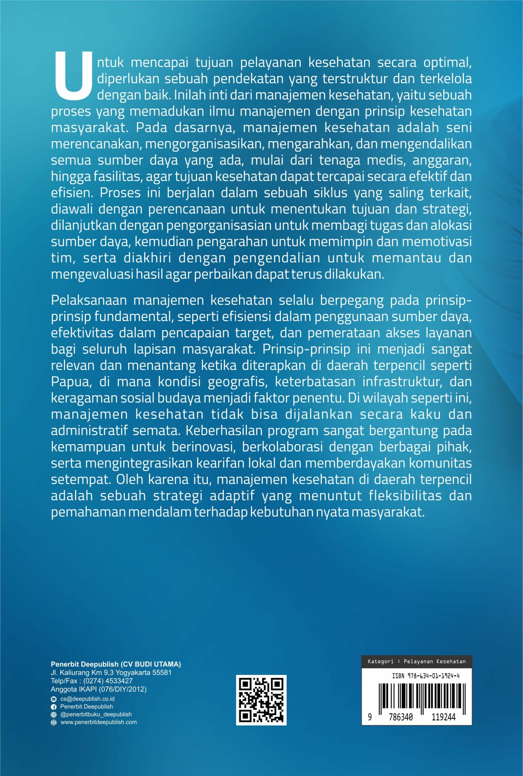 Buku Manajemen Pelayanan Kesehatan di Daerah Terpencil Papua diterbitkan oleh Penerbit Buku Pendidikan Deepublish.