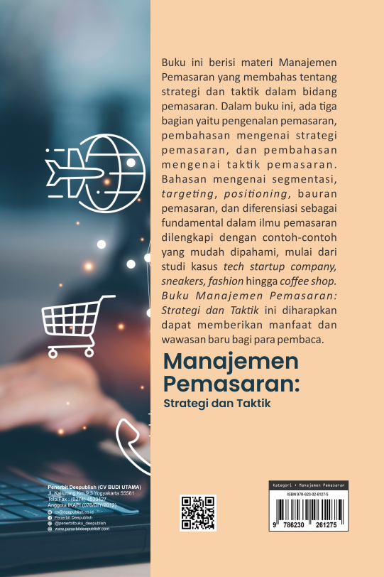 Buku Manajemen Pemasaran: Strategi dan Taktik ini diterbitkan oleh Penerbit Buku Pendidikan Deepublish.