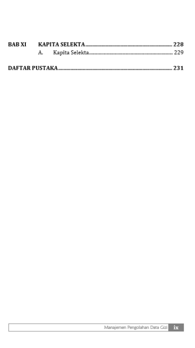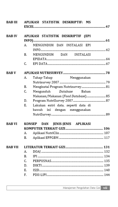 Berikut Daftar Isi Buku Ilmu Gizi yang berjudul Buku Manajemen Pengolahan Data Gizi, diantaranya: