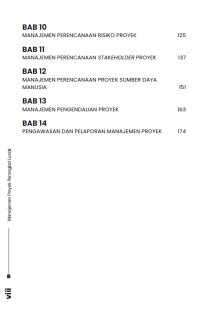 Berikut Daftar Isi Buku Ilmu Komputer yang berjudul Buku Manajemen Proyek Perangkat Lunak, diantaranya: