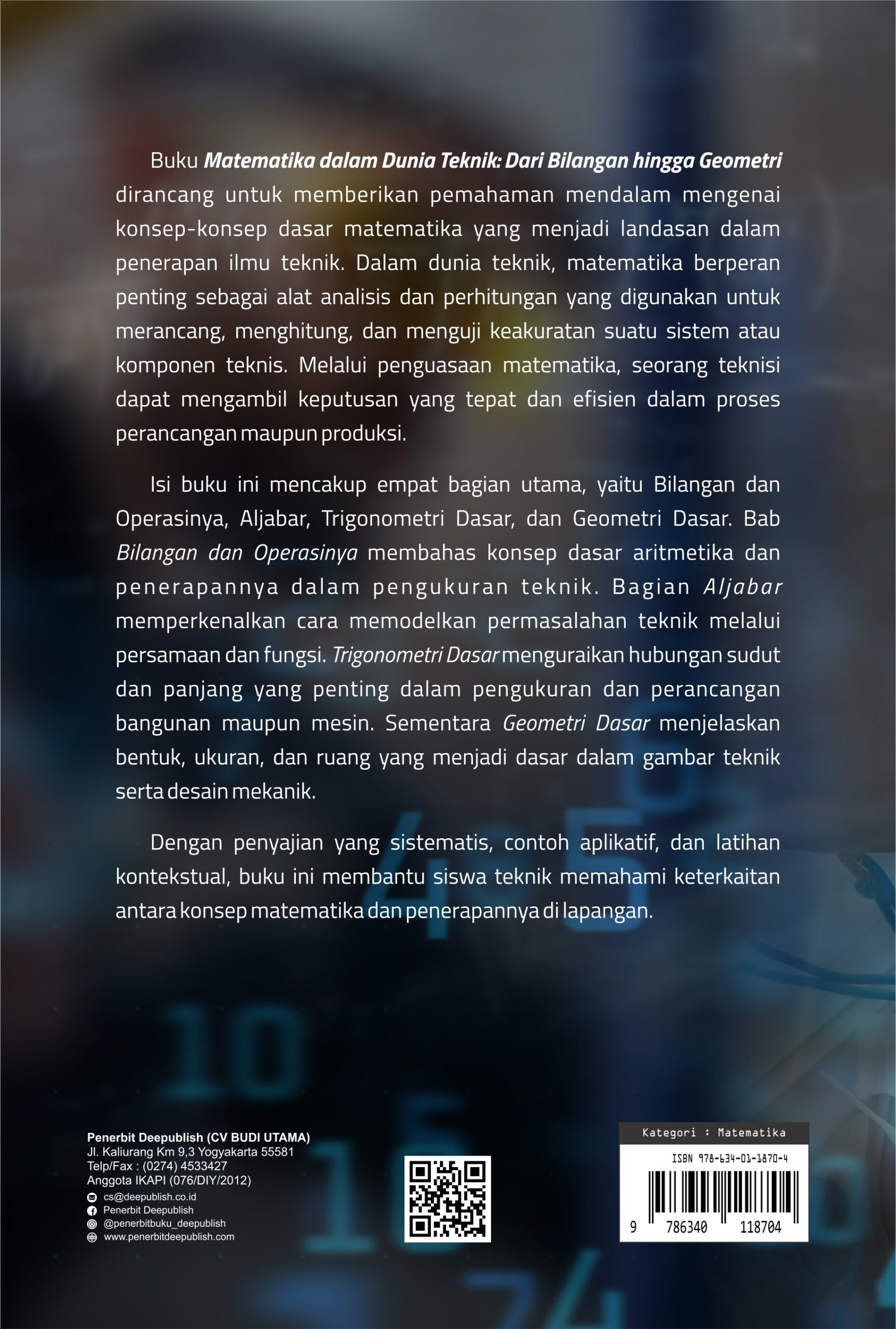 Buku Matematika Dalam Dunia Teknik: Dari Bilangan Hingga Geometri diterbitkan oleh Penerbit Buku Pendidikan Deepublish.