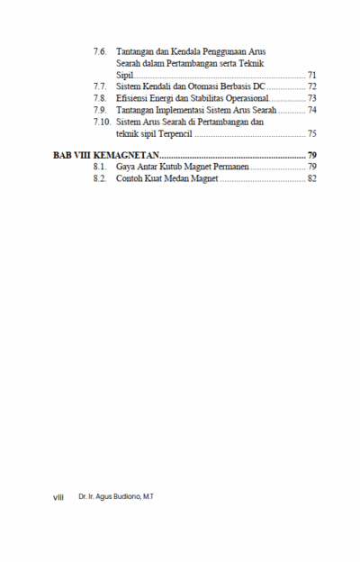Selain itu, prinsip-prinsip elektrostatika juga digunakan dalam teknologi pemisahan mineral, sistem pengukuran, dan proteksi peralatan dari gangguan medan listrik. Dengan demikian, pemahaman yang kuat mengenai hukum-hukum dasar fisika dasar 2 serta penerapannya dalam konteks pertambangan menjadi sangat relevan untuk meningkatkan keselamatan dan efisiensi operasional tambang. Buku Materi Fisika Dasar 2 Teknik Pertambangan dan Teknik Sipil sangat cocok bagi para peneliti, mahasiswa, dan praktisi yang ingin mendalami mengenai hukum-hukum ilmu fisika serta penerapannya dalam teknik pertambangan dan juga teknik sipil.