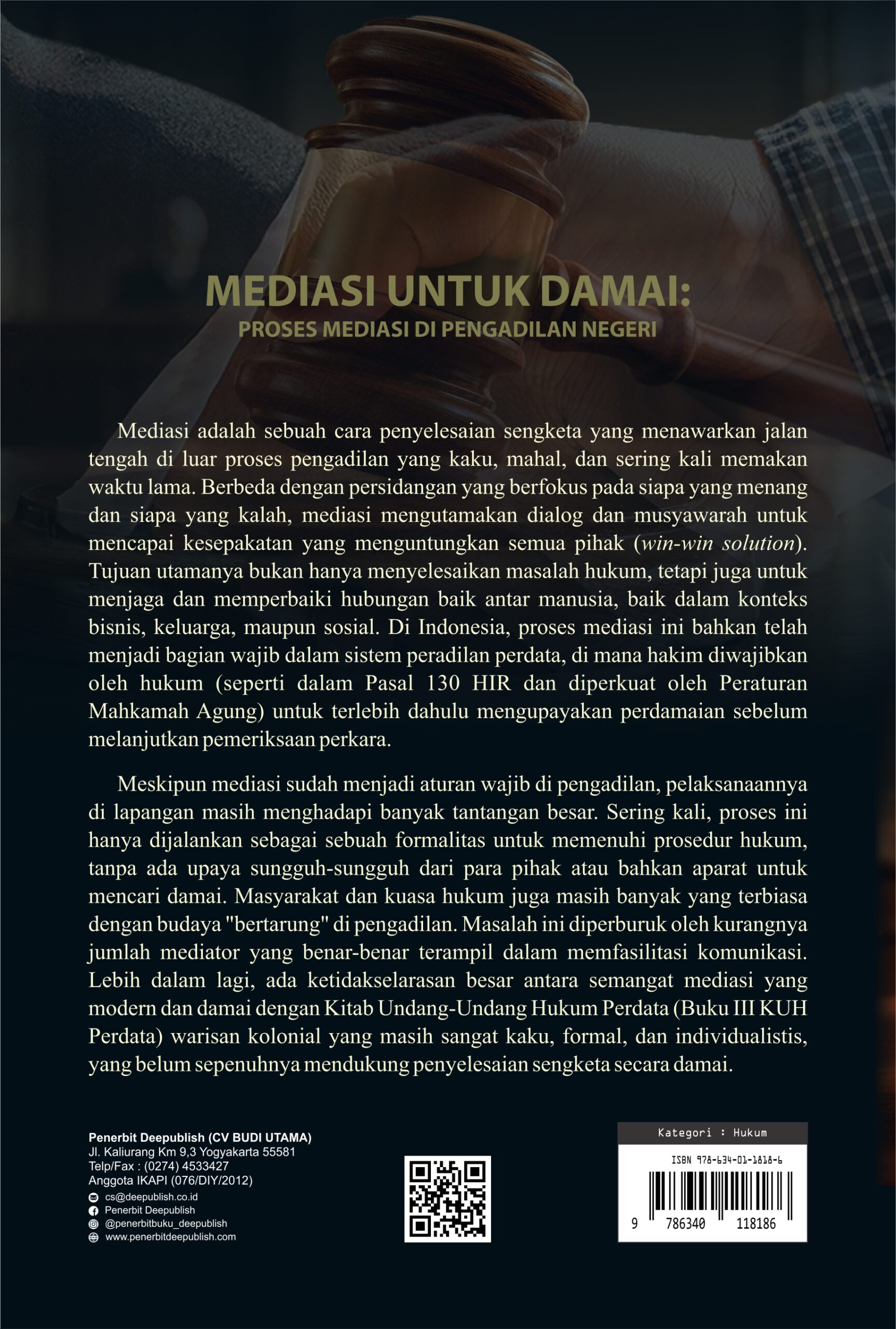 Buku Mediasi untuk Damai: Proses Mediasi Di Pengadilan Negeri diterbitkan oleh Penerbit Buku Pendidikan Deepublish.
