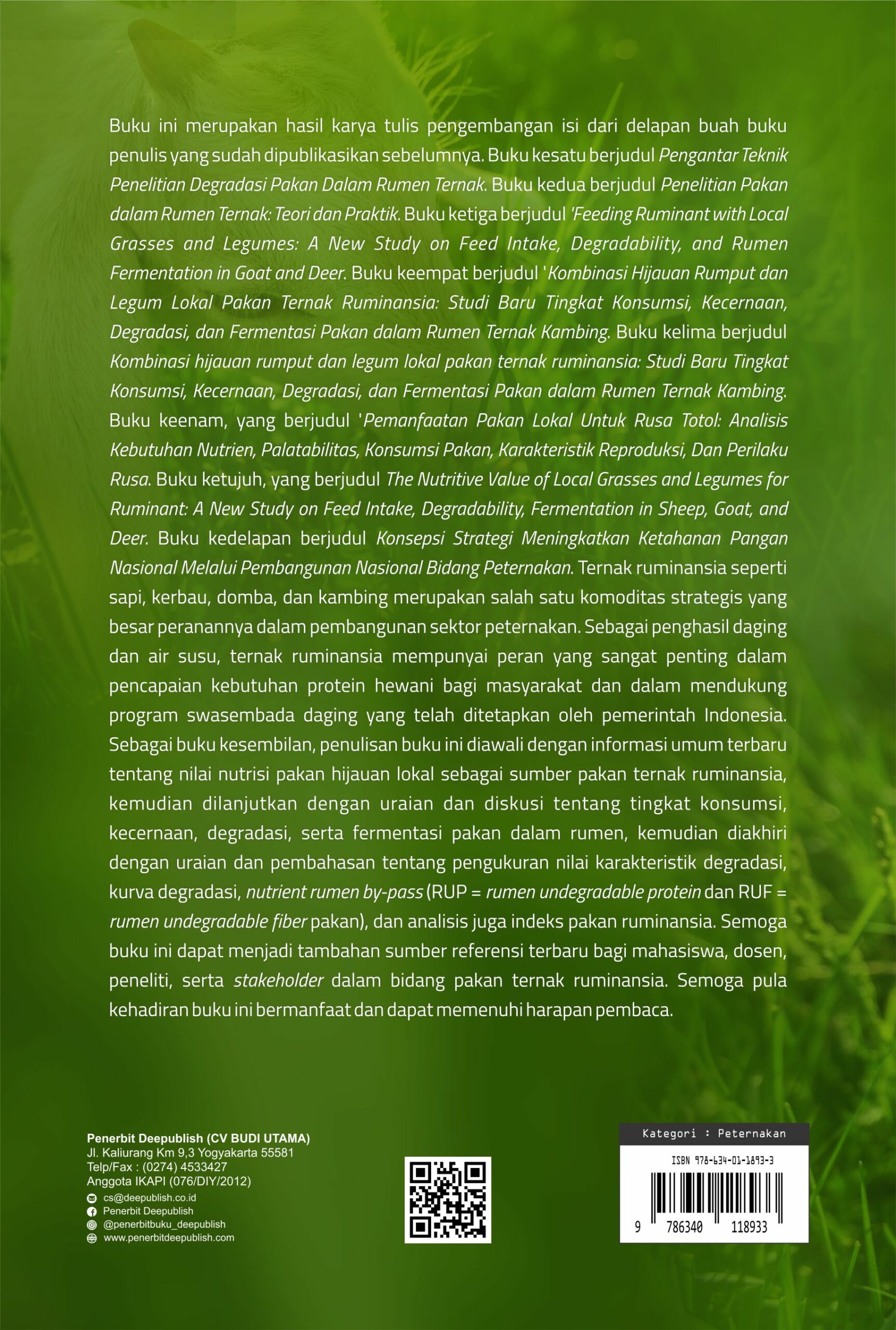 Buku Memahami Karakteristik Fermentasi dan Degradasi Pakan dalam Rumen Ruminansia (Kecernaan, Fermentasi, dan Degradasi Pakan Ruminansia di Sulawesi Selatan) diterbitkan oleh Penerbit Buku Pendidikan Deepublish.