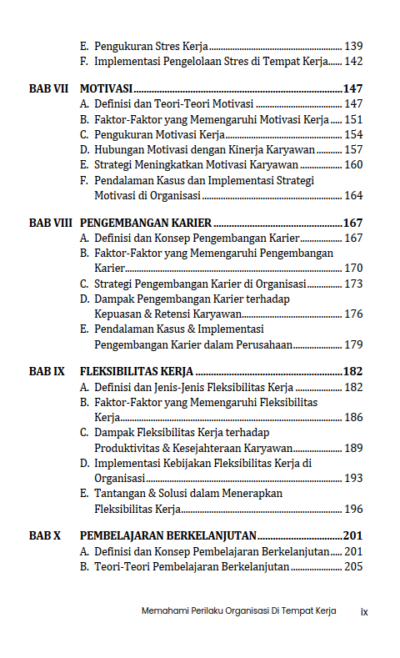 Berikut Daftar Isi Buku Manajemen berjudul Buku Memahami Perilaku Organisasi di Tempat Kerja, diantaranya: