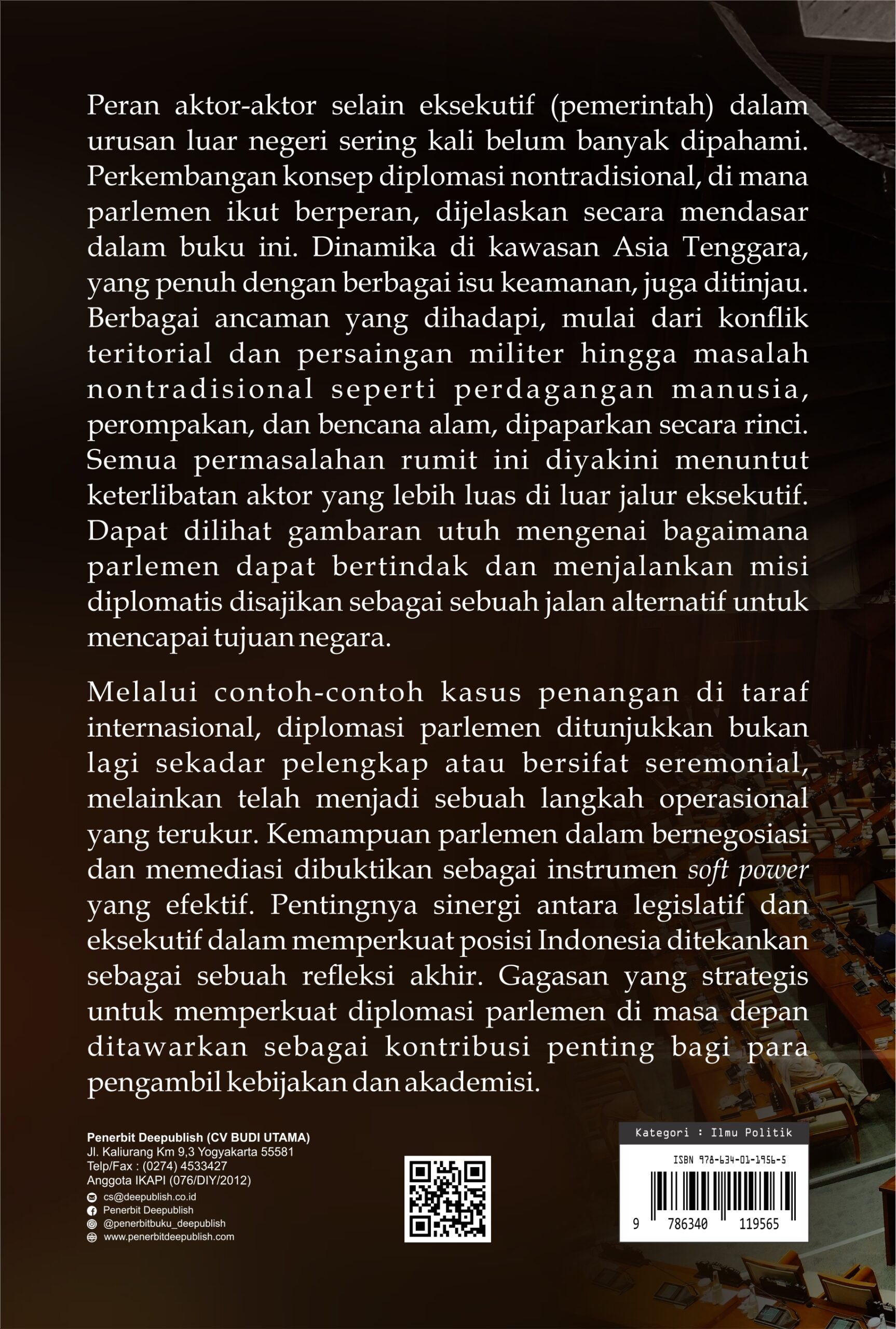 Buku Menakar Diplomasi Parlemen Peran Parlemen Indonesia dalam Dinamika Keamanan dan Kerja Sama Regional diterbitkan oleh Penerbit Buku Pendidikan Deepublish.