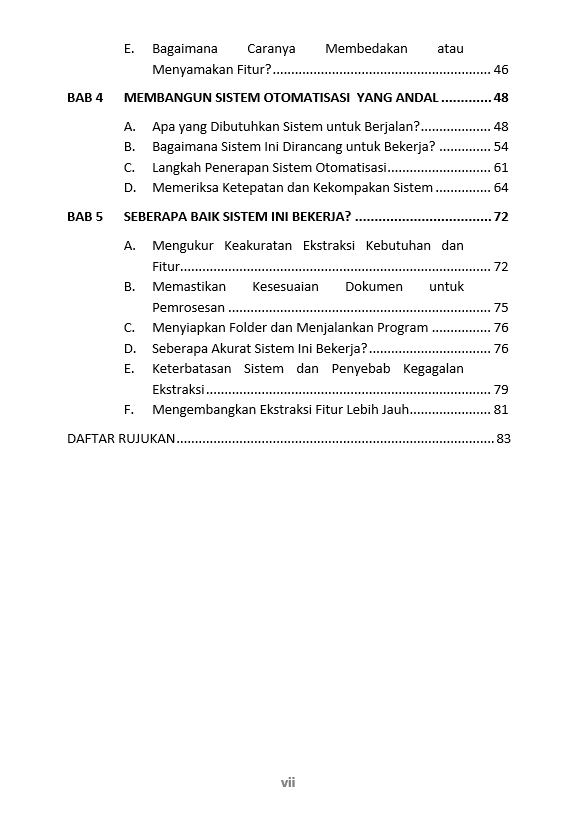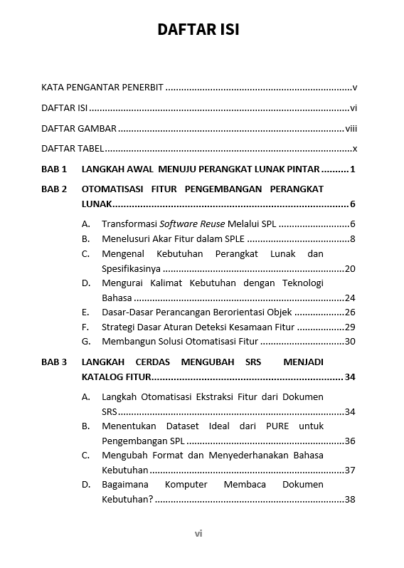 Berikut Daftar Isi Buku Ilmu Komputer yang berjudul Buku Menambang Fitur dari Dokumen Spesifikasi Kebutuhan Perangkat Lunak, diantaranya: