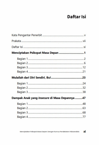 Berikut Daftar Isi Buku Psikologi yang berjudul Buku Menciptakan Psikopat Masa Depan: dengan Rumus Pendekatan Psikoanalisis, diantaranya: