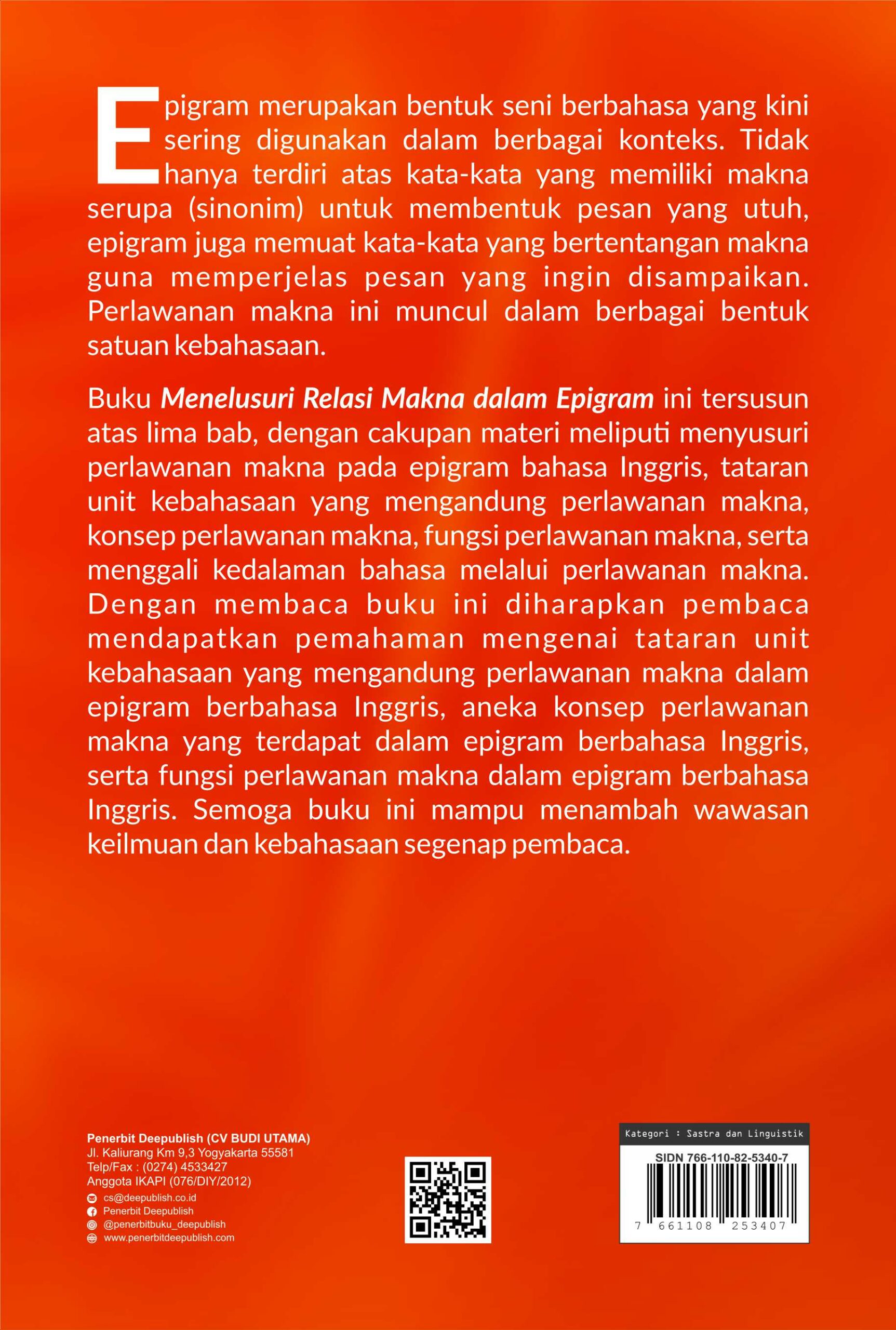 Buku Menelusuri Relasi Makna dalam Epigram diterbitkan oleh Penerbit Buku Pendidikan Deepublish.