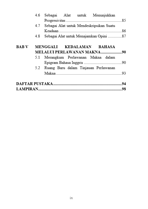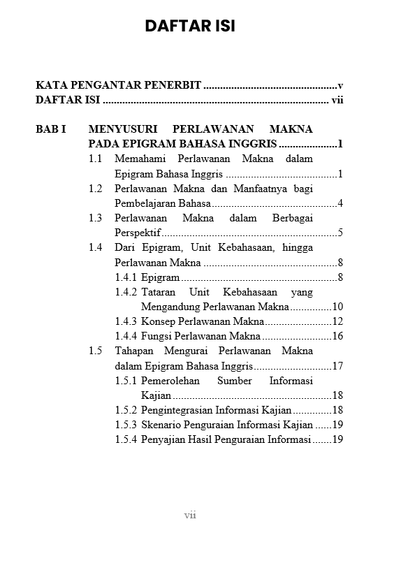 Berikut Daftar Isi Buku Bahasa dan Sastra yang berjudul Buku Menelusuri Relasi Makna dalam Epigram , diantaranya: