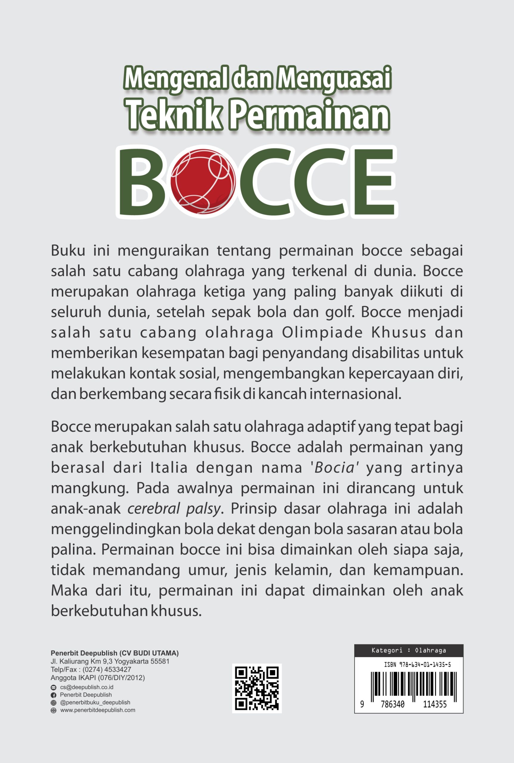 Buku Mengenal dan Menguasai Teknik Permainan Bocce diterbitkan oleh Penerbit Buku Pendidikan Deepublish.