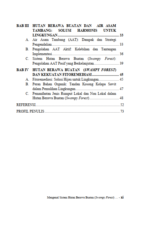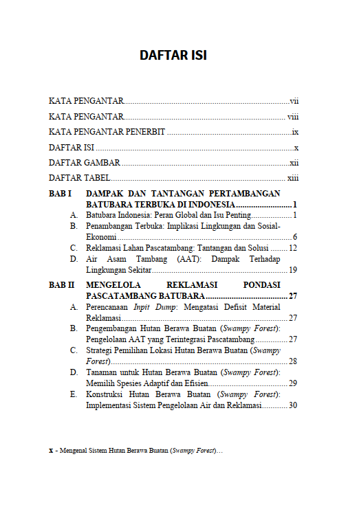 Berikut Daftar Isi Buku Pertambangan yang berjudul Buku Mengenal Sistem Hutan Berawa Buatan (Swampy Forest) Seri Ekologi dan Konservasi Pascatambang, diantaranya: