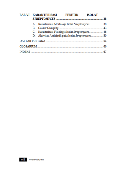 Berikut Daftar Isi Buku Biologi yang berjudul Buku Mengenal Streptomyces Bakteri Penghasil Antibiotik Terbesar: Karakterisasi Secara Fenetik, diantaranya: