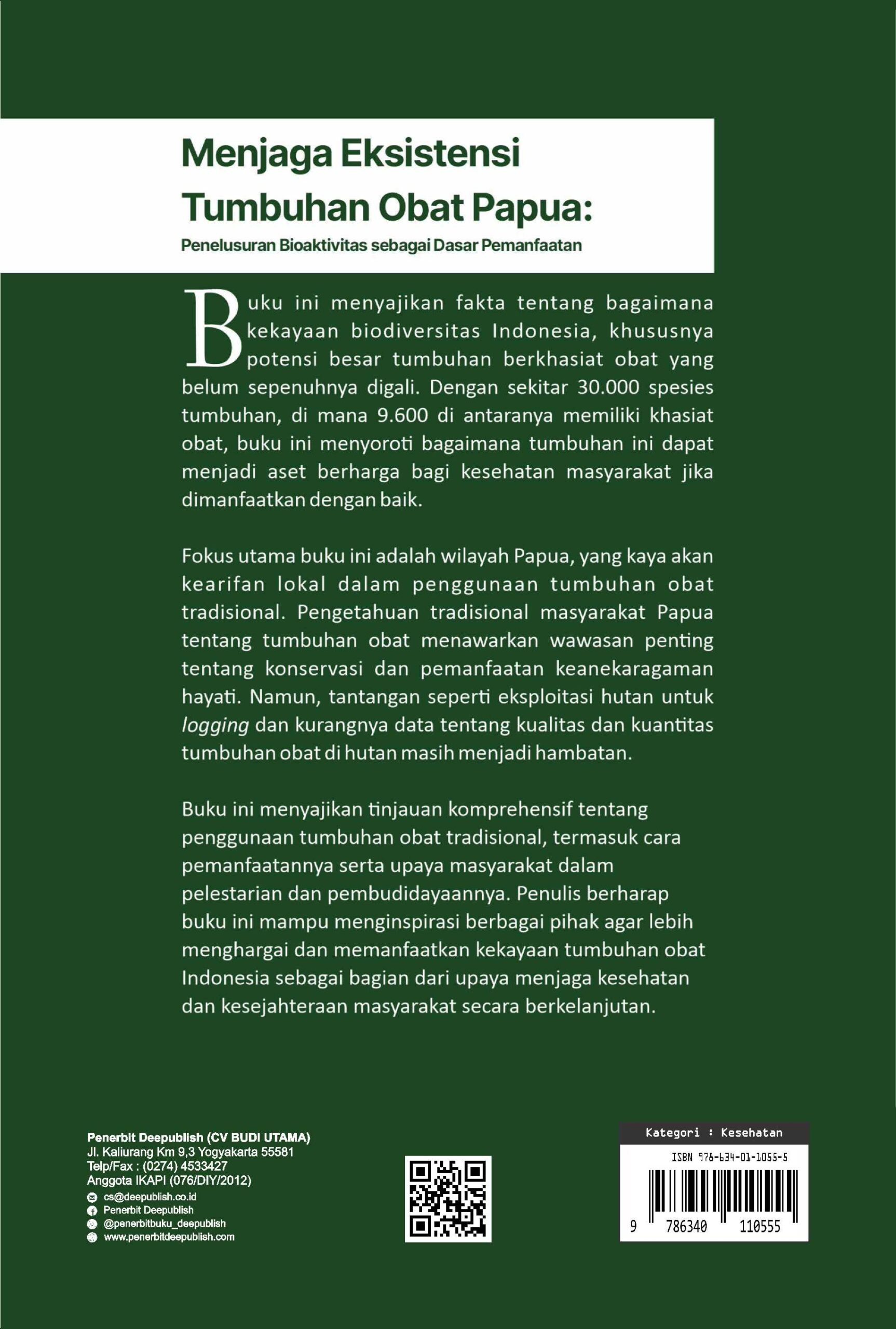 Buku Menjaga Eksistensi Tumbuhan Obat Papua: Penelusuran Bioaktivitas sebagai Dasar Pemanfaatan diterbitkan oleh Penerbit Buku Pendidikan Deepublish.