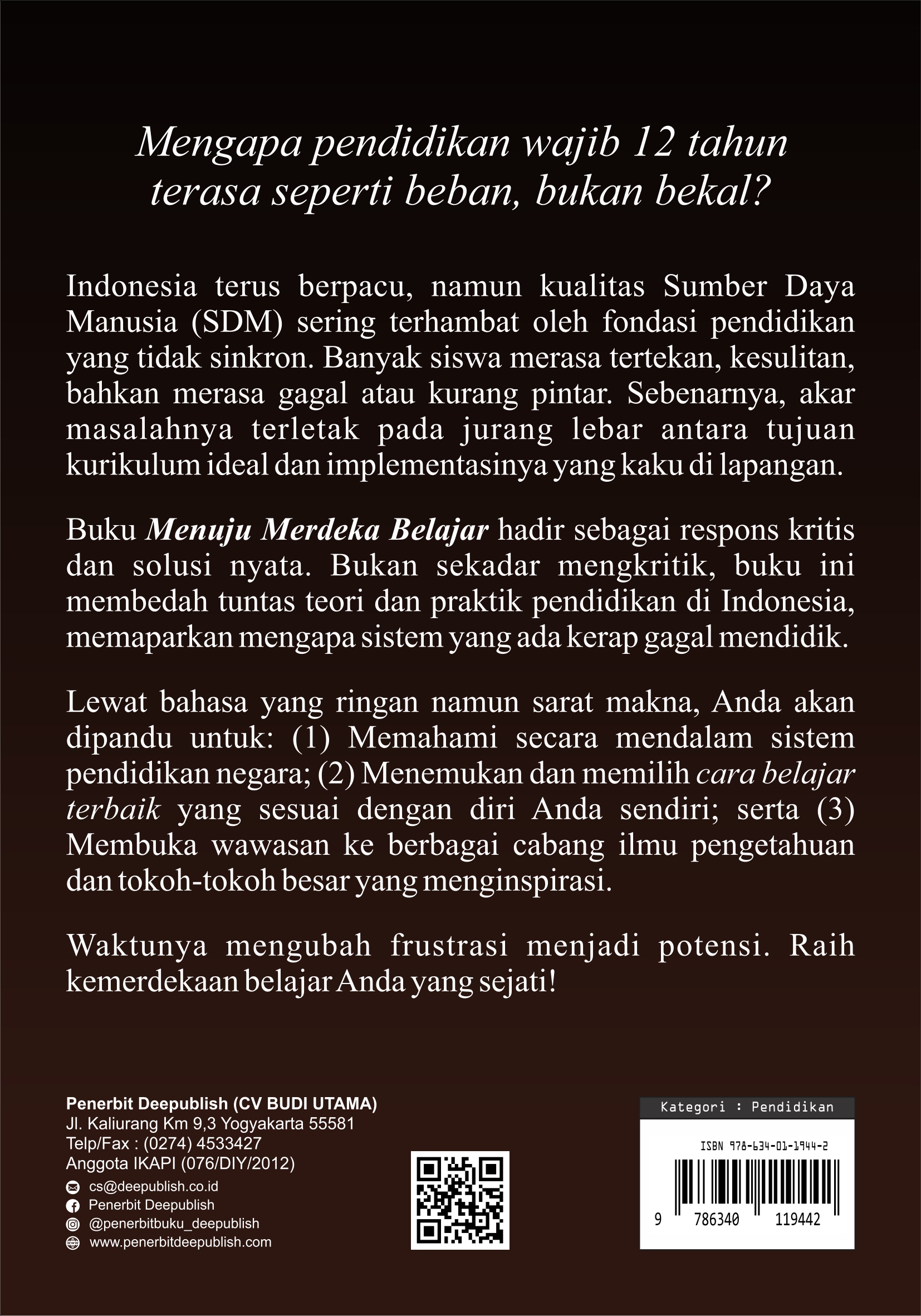 Buku Menuju Merdeka Belajar diterbitkan oleh Penerbit Buku Pendidikan Deepublish.